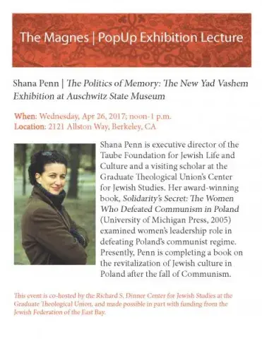 Shana Penn is executive director of the Taube Foundation for Jewish Life and Culture and a visiting scholar at the Graduate Theological Union's Center for Jewish Studies. Her award-winning book, Solidarity’s Secret: The Women Who Defeated Communism in Poland (University of Michigan Press, 2005) examined women’s leadership role in defeating Poland’s communist regime. Presently, Penn is completing a book on the revitalization of Jewish culture in Poland after the fall of Communism.