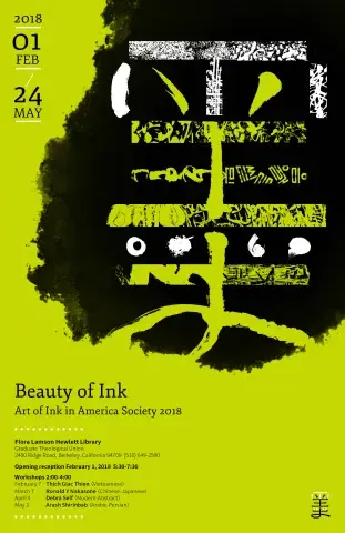 With the opening of “Beauty of Ink” at the Graduate Theological Union, the Art of Ink in America Society (AIAS) celebrates its fourteenth exhibition season. The Society is dedicated to sharing the excitement of the beauty of ink executed by the soft brush. The kanji 漢字 or ideogram that inspire the Society’s artists evolved from abstractions of objects, sounds, and ideas derived from images from the natural world. Sho 書 (as it is referred to in Japanese) can be properly referred to as abstract art; ideograms are not visual representations of objective or natural forms. The modern art of sho explores the expressive possibilities of line and space by deconstructing, reconstructing, and deforming the kanji, to experiment with the aesthetic potential of line and space. But beyond the beauty of its aesthetic forms, the art of the hand-written line reveals the spiritual station of the artist-creator. The pliant brush, free flowing ink, and absorbent paper are the tools through which the artist gives form to his or her inner life. The works on exhibit are avant-garde expressions of the traditional art of sho.