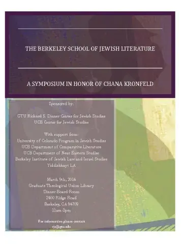 Join us for this conference celebrating the publication of a festschrift put together by Chana Kronfeld’s students, exploring the question of the distinctive Berkeley approach to Jewish literature. Sponsored by CJS and the UCB Center for Jewish Studies.