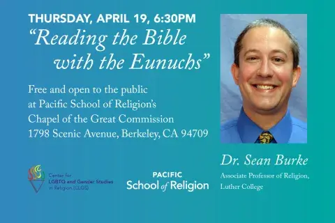 Thu, 19 Apr 2018 - 18:30 Image The Center for LGBTQ and Gender Studies in Religion (CLGS) at PSR invites you to the 2018 Boswell Lecture, featuring GTU alum Dr. Sean Burke, Associate Professor of Religion at Luther College. Chapel, Pacific School of Religion ">