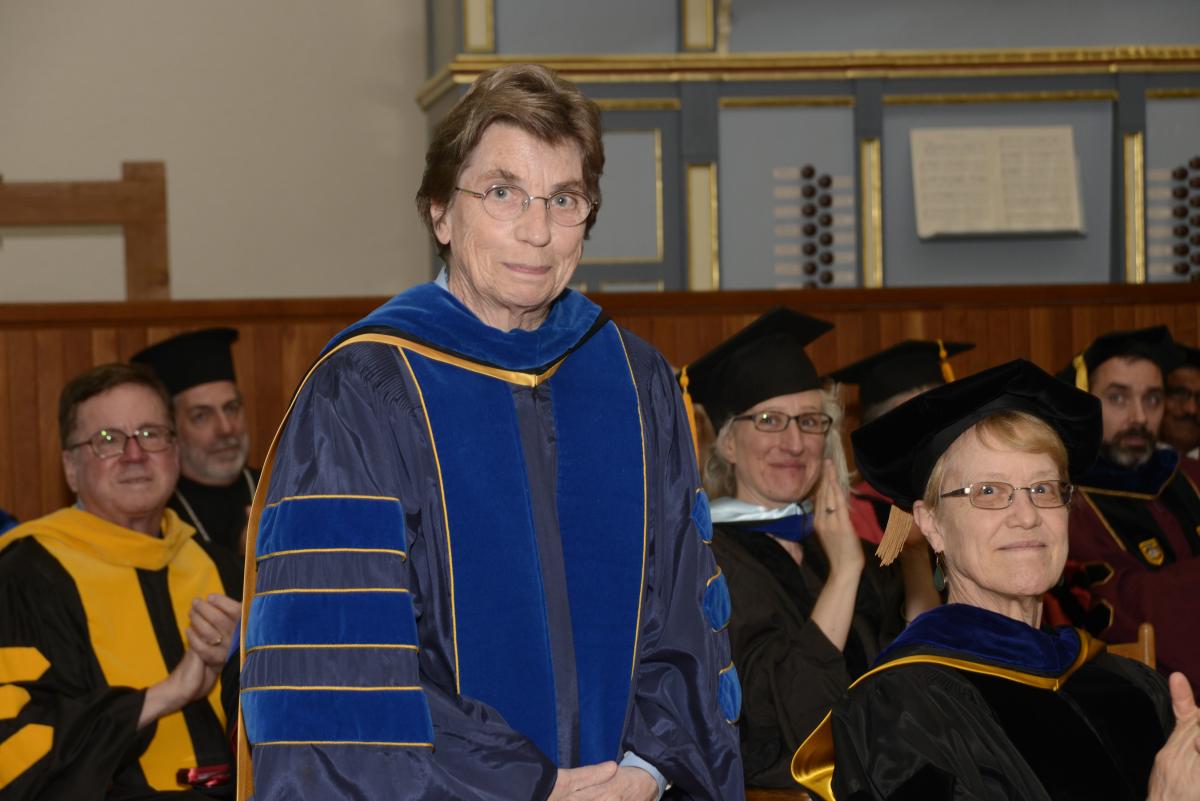 Dr. Judith Berling, the GTU’s Professor of Chinese and Comparative Religions, spoke on behalf of the GTU faculty, addressing the graduates with a speech entitled, "The Road Ahead: What Is Commencing?” Dr. Berling will be retiring this year, after twenty-nine years on the GTU faculty.