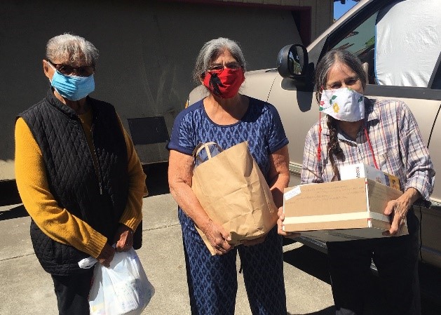 IFH has been delivering two weeks’ worth of food containing fruits and vegetables, canned pantry staples, eggs, protein-rich meat, fish, and beans, rice and bread to a total of 250 community members. Families receive Native medicines; sage, cedar, tobacco and Sweet-grass. Weekly IFH staff and volunteers packaged essential foods for families and elders along with essential Covid supplies. We have been making regular front door deliveries of lifeline foods and goods to those in need. Our community garden helped provide produce, squash, onions, carrots, tomatoes, blackberries, grapes and native herbal medicines. In November we usually host a Community Harvest dinner this year we were not able to do this. So we delivered Harvest Food to over 354 Native community members. For the December Holidays we organized a large community food distribution to over 93 families. The native community that IFH serves are getting COVID, and we are seeing some deaths.